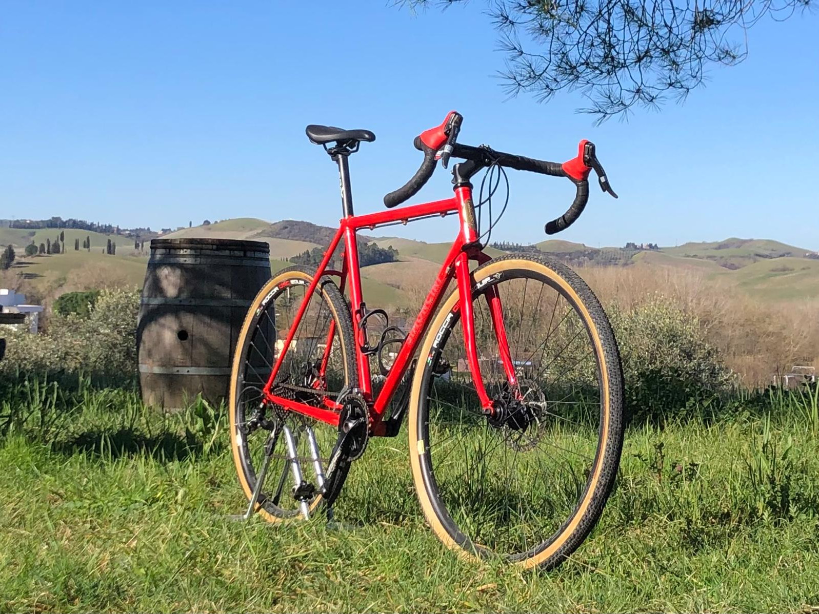 Abbiamo usato la tubazione Dedacciai Zero per mantenere la leggerezza, ma la solidità del triangolo principale è garantita da un tubo obliquo di grosso diametro. Il tubo orizzontale è sagomato così come i posteriori verticali, di un modello solitamente utilizzato per i telai da corsa. Tali posteriori però sono stati inseriti in una geometria del carro tale da mescolare in egual maniera prontezza sullo scatto ed elasticità sui settori sterrati.Il tubo sterzo cilindrico oversize permette l’eventuale montaggio sia con forcelle con canotti di 1+1/8” (quindi anche di acciaio), sia con forcelle con canotto cilindrico 1+1/8” – 1+1/4”, che per le classiche cilindriche 1+1/8” – 1+1/2”.Per come l’abbiamo concepita, la BURAN è proposta con: forcella in carbonio Columbus Futura Gravel e clearance di 45mm.